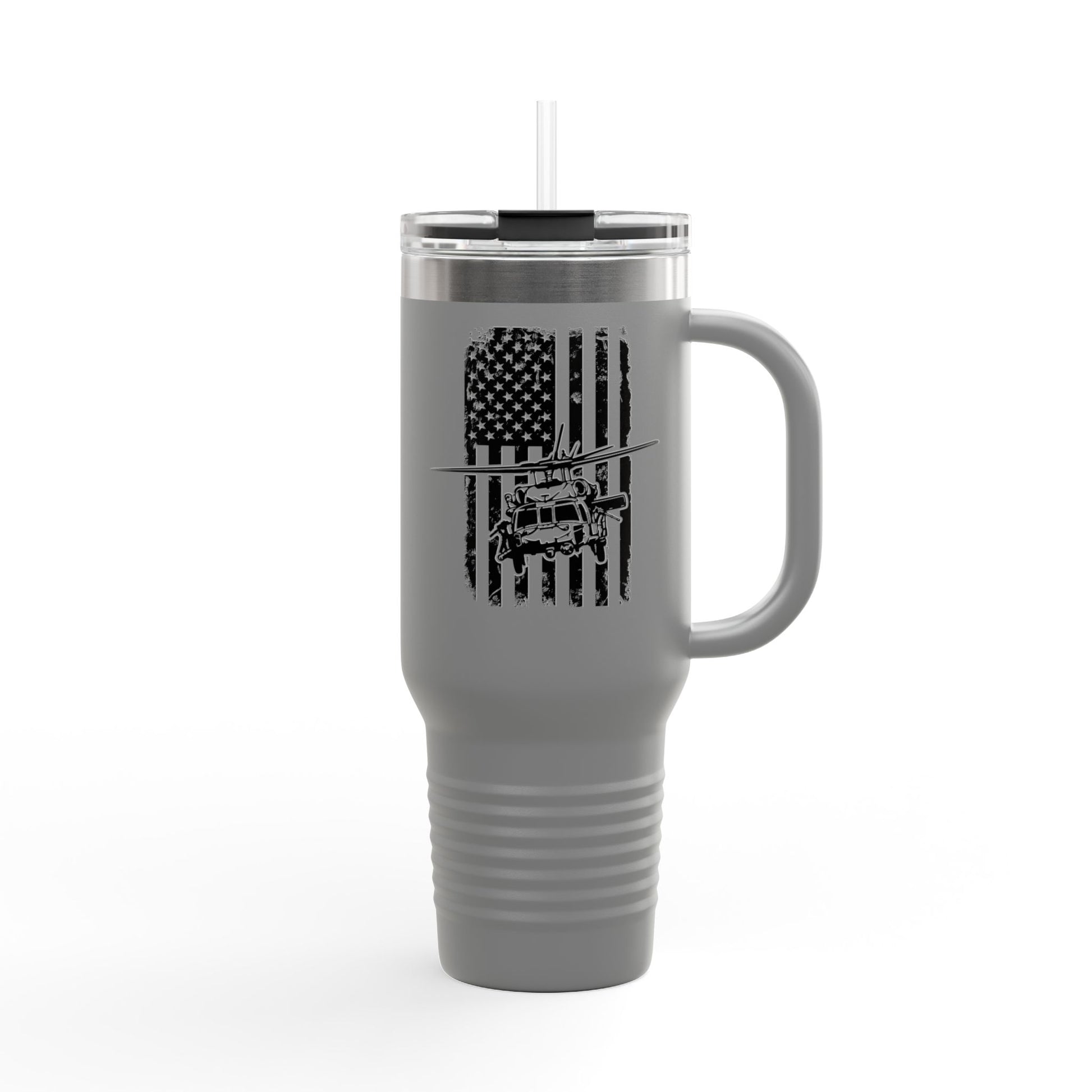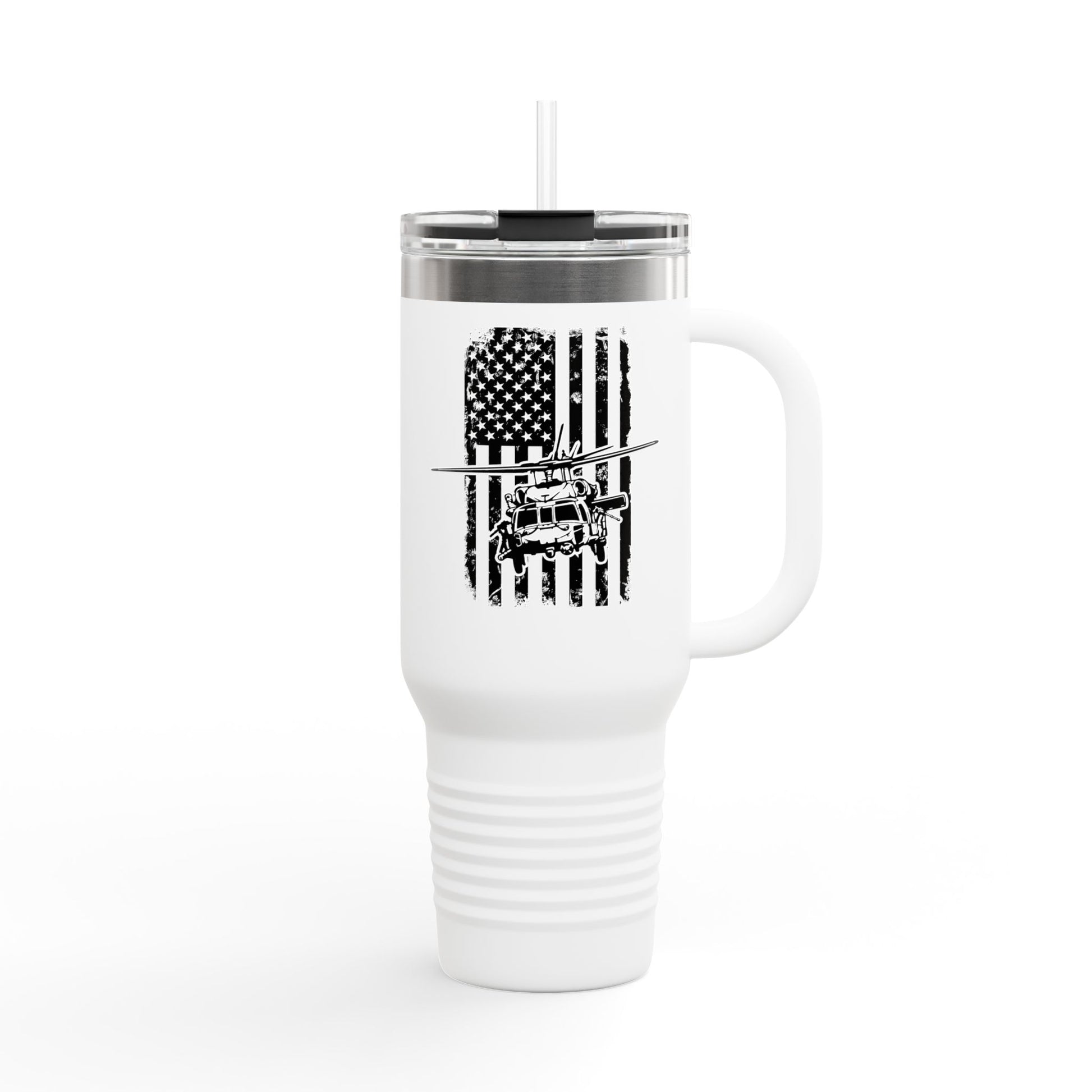 40oz Insulated Travel Mug — American Flag with Blackhawk Graphic