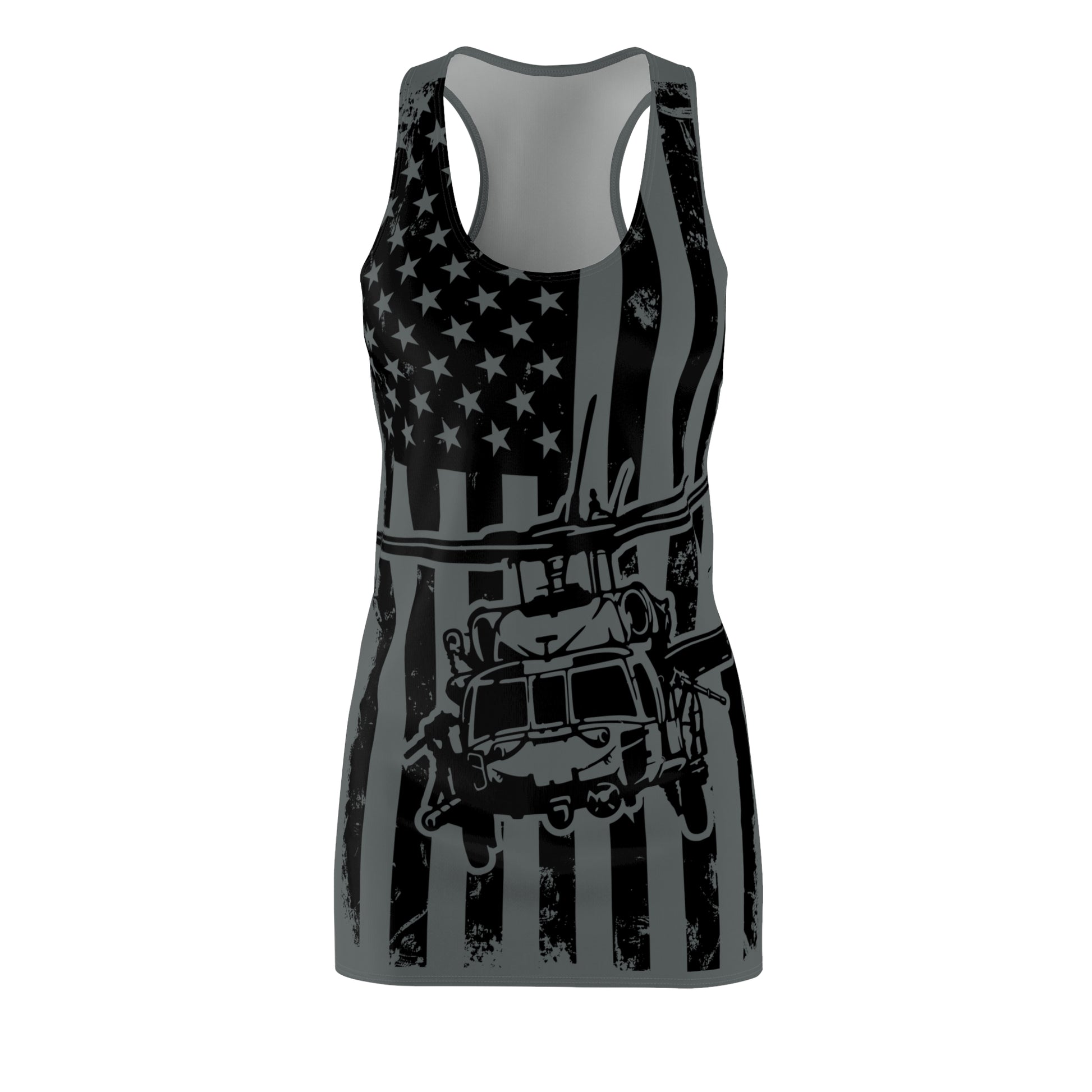 American Blackhawk Helicopter Racerback Dress — Patriotic Black & Grey Military Design