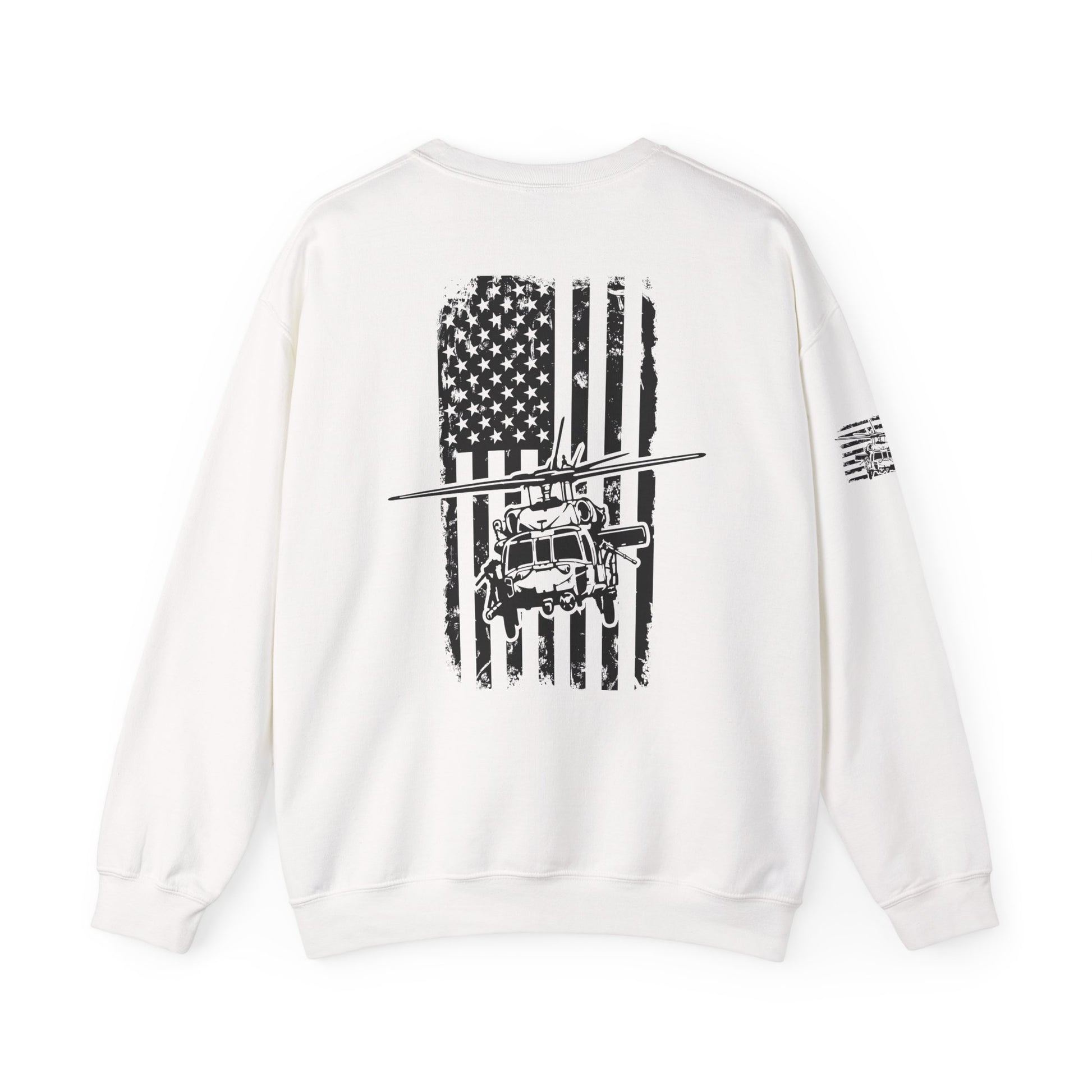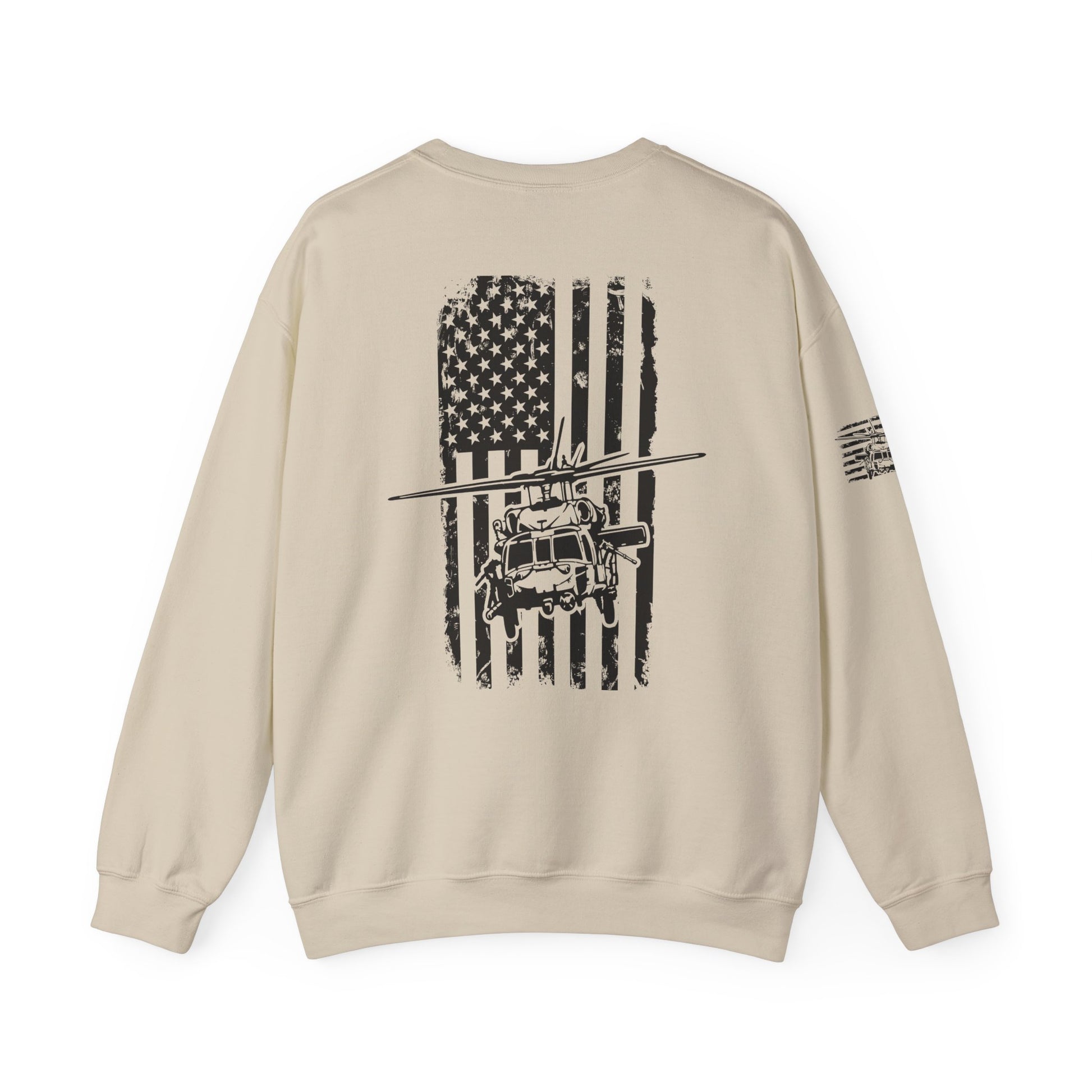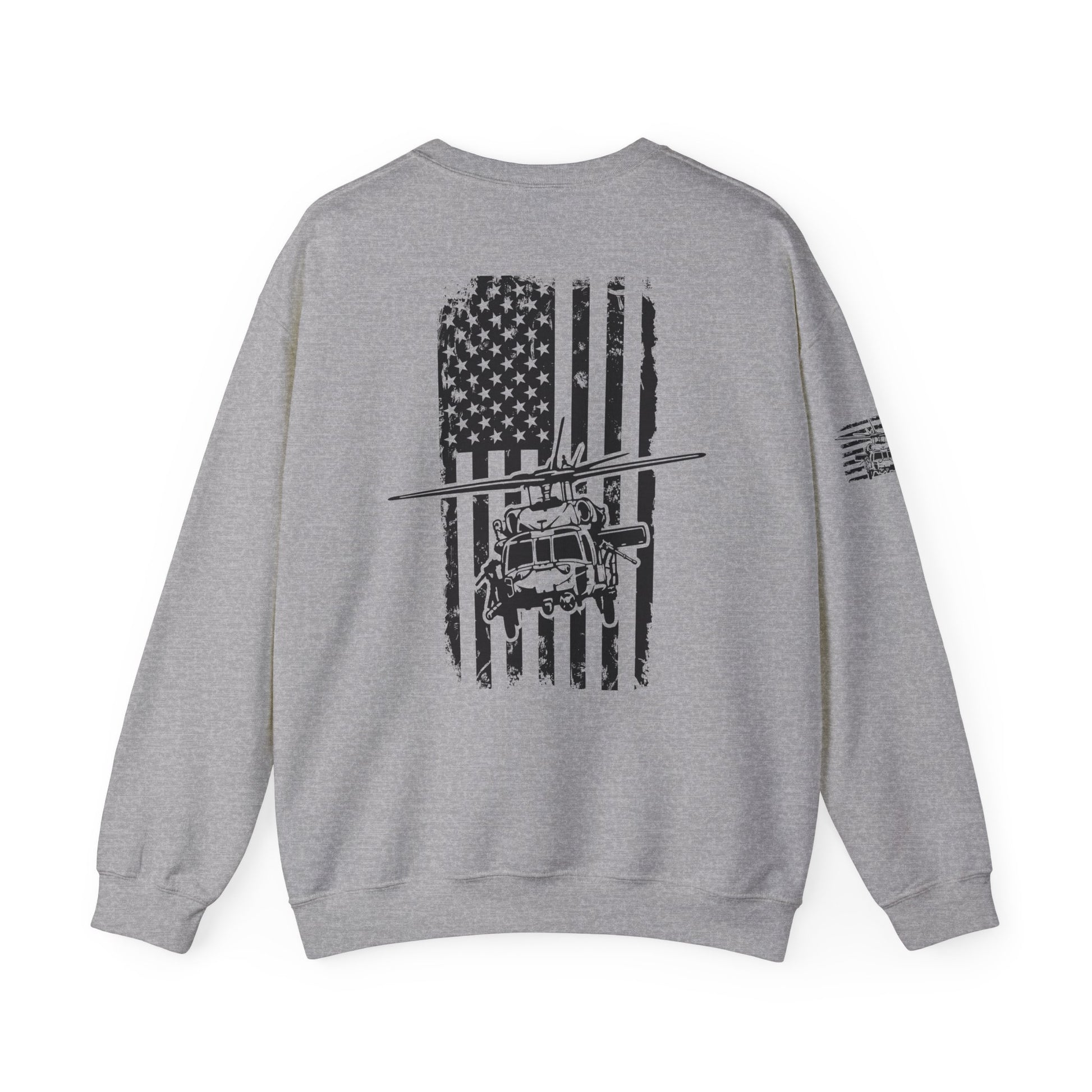 Crewneck Sweatshirt - American Flag Blackhawk Helicopter Graphic (Back Print)