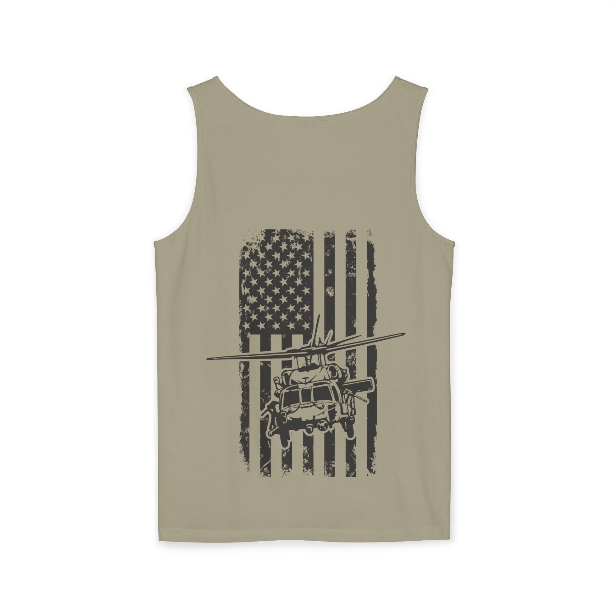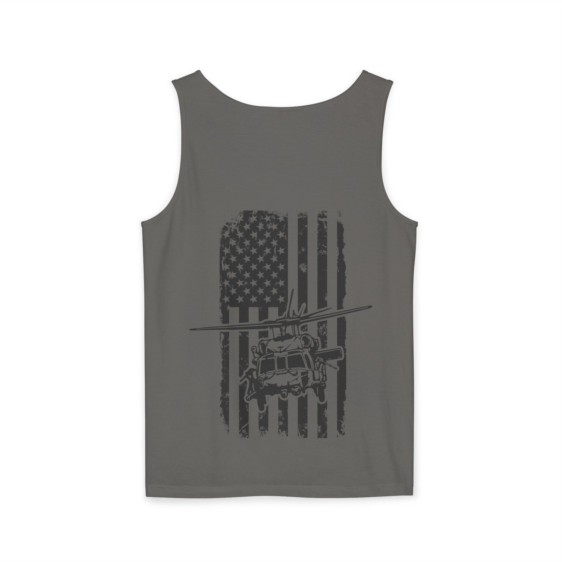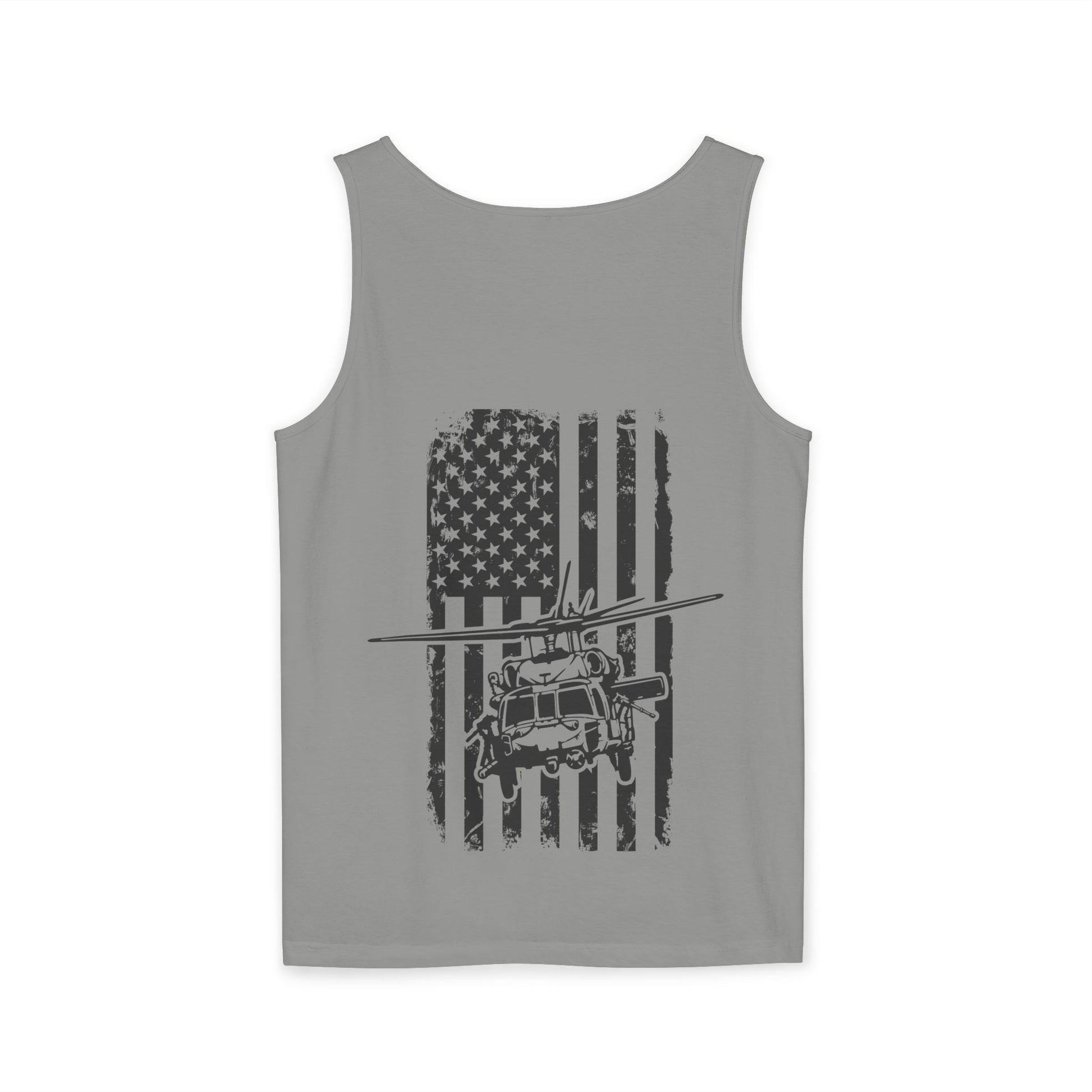 Military Blackhawk Helicopter Flag Tank Top — Vintage USA Rescue Chopper Design